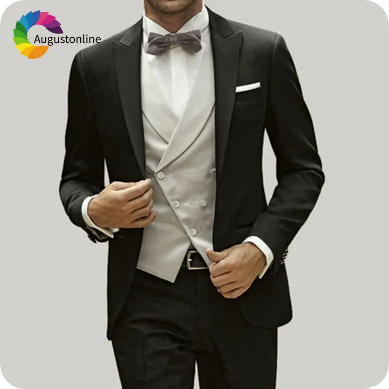 Special Chance of Italian Black Men's Classic Suits Peaked Lapel Groom Wear Groomsmen Suit 3Piece Jacket Pants Vest S
