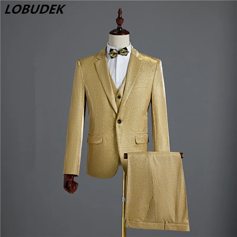 Limited Offer of (Jacket+Vest+Pants) Bright Silk Blazer Formal Men's Suits Evening Performance Singer Host Stage Cos