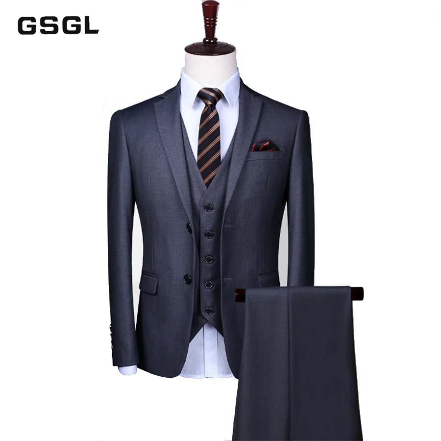 .image of Men's Slim Fit 3 Piece Suit One or Two Button Blazer Tux Vest & Trousers for Wedding Groom Dress Su