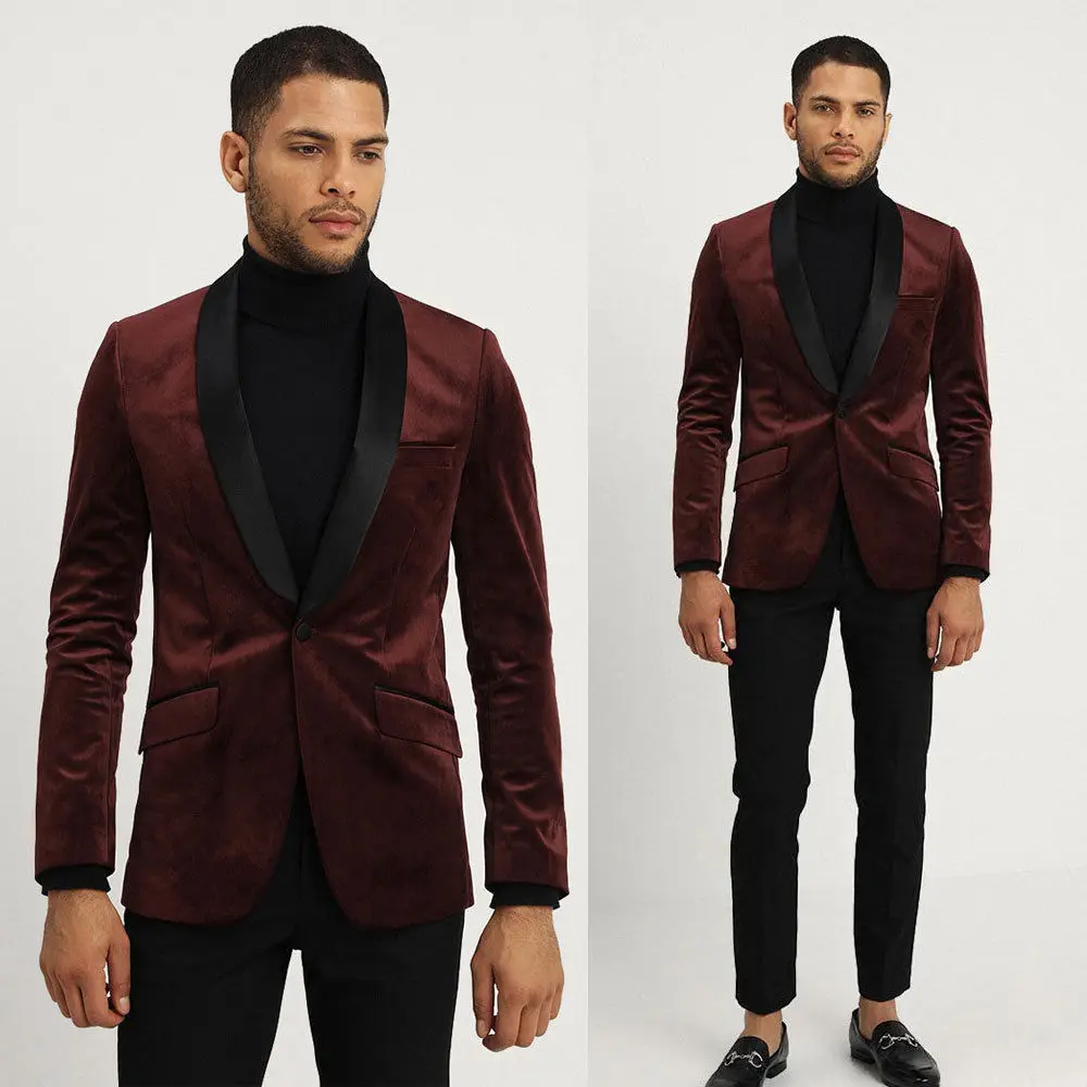 0 Response to "Discount Chance of Men's Wind Red Velvet Prom Party Tuxedos Shawl Lapel Groom Wedding Blazer Coat"