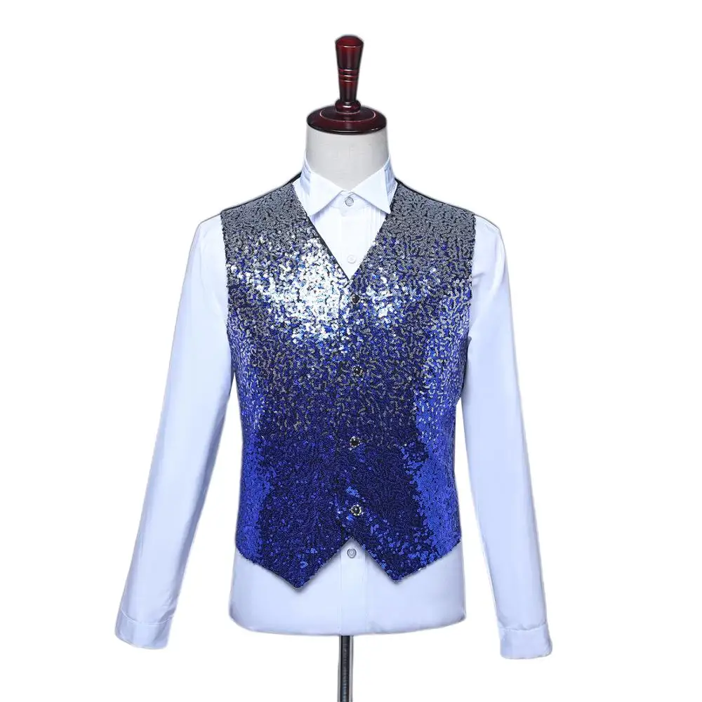 0 Response to "Price Chance for Men's Gradient Sequins Waistcoat Royal Blue Shiny Paillette Glitter Vest Slim Fit V-neck Wedding Gr"